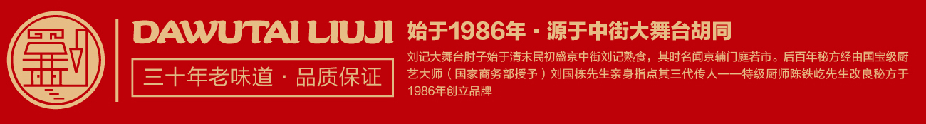盛京,昔乃大清王朝發(fā)祥之地。劉記大舞臺(tái)肘子始于清末民初盛京中街劉記熟食,其時(shí)名聞京輔門庭若市。后百年秘方經(jīng)由國(guó)寶級(jí)廚藝大師(國(guó)家商務(wù)部授予)劉國(guó)棟先生親身指點(diǎn)其三代傳人——中國(guó)烹飪大師劉家驥之徒中國(guó)烹飪大師陳鐵屹先生改良秘方,于1986年創(chuàng)立品牌。劉記大舞臺(tái)經(jīng)營(yíng)的產(chǎn)品涵蓋招牌熏肘,豬蹄,燒雞等系列,產(chǎn)品色澤潤(rùn)嫩、酥美可口、吮指尤香、譽(yù)滿沈城,遂成古今絕味,其獨(dú)特的風(fēng)味深受沈城百姓喜愛(ài)。經(jīng)過(guò)三十余年的沉淀發(fā)展,劉記大舞臺(tái)品牌也成為了沈陽(yáng)地標(biāo)美食文化名片之一。